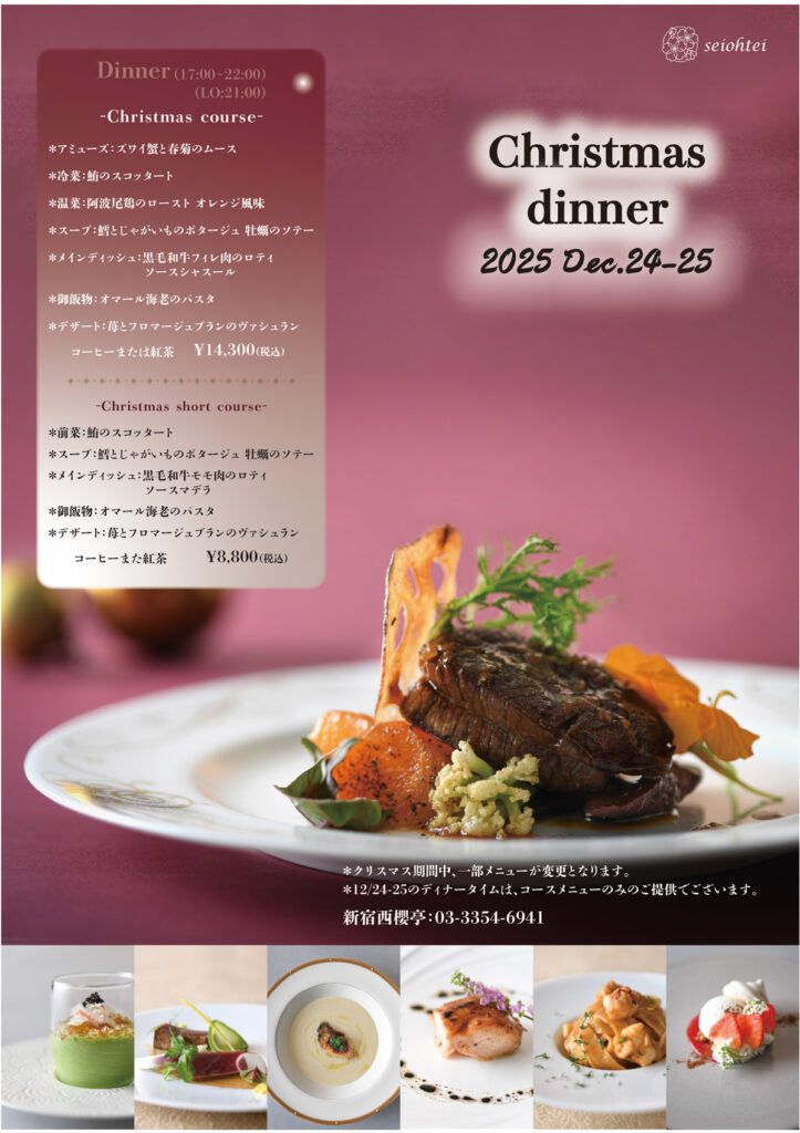 *12/24・/25ディナータイムは、コースメニューのみのご提供でございます。